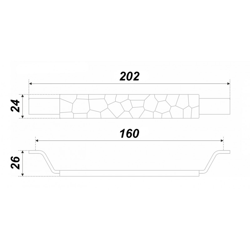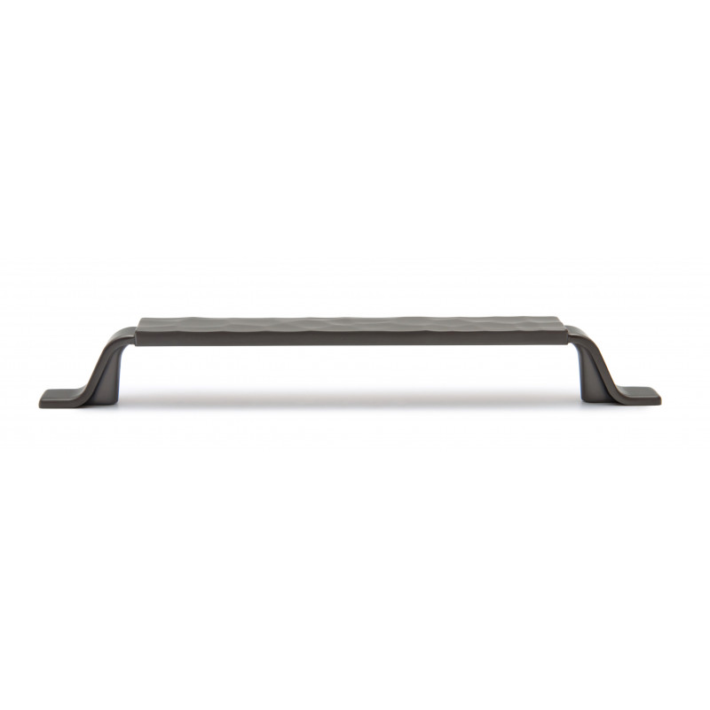 Одним лишь названием ручка смело заявляет о себе. Грубоватый дизайн широкой лицевой части напоминает то чеканку, то рябь на воде, то фактуру кожи, обещая высокую тактильность прикосновений. Ножки скобы напротив, кажутся гибкими и изящными, скрывая свою основательность умелым декором.