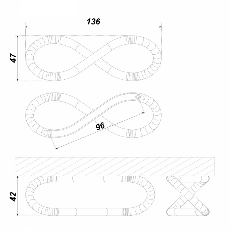 Оригинальная и воздушная ручка «8» в форме знака бесконечности – торжество высокого стиля, свежее дыхание современности и нетривиальный способ выразить индивидуальность мебельного гарнитура. Будто бы застывшая в лучшей версии себя, модель открывает новые перспективы для мебели, делает пространство осмысленным и завершенным. Ручка представлена с межцентровым расстоянием 96 мм и особенно хорошо будет смотреться на мебели малых форм – на комодах, тумбах. В зависимости от расположения скоба может быть установлена как на выдвижные ящики, так и на распашные дверцы. Утонченная «бесконечность» создана для гарнитуров современных стилей, включая лофт, урбанизм и будет одинаково дополнять как ровные, глухие фасады, так и матовые, фантазийные, под бетон и ржавчину. Модель «8» в цвете Хром полированный (СР) подойдет к контрастным фасадам, например белым или черным, а также сочной, яркой палитры цветов.