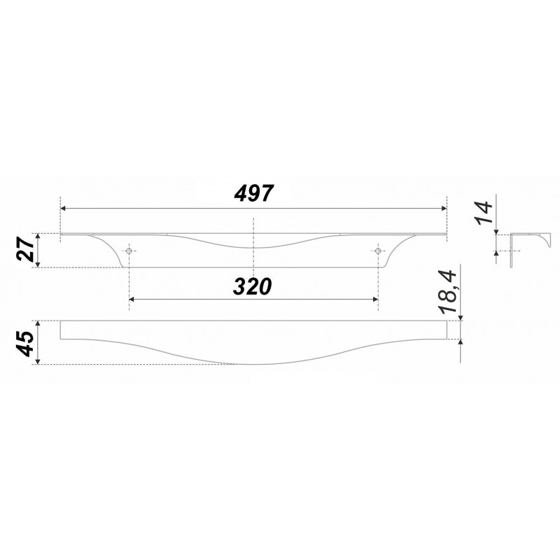 Ширина фасадов 400, 450, 500, 600, 800 – самые распространенные в массовом секторе мебели. Именно с такими параметрами предложены торцевые ручки M «в размер» фасада.
