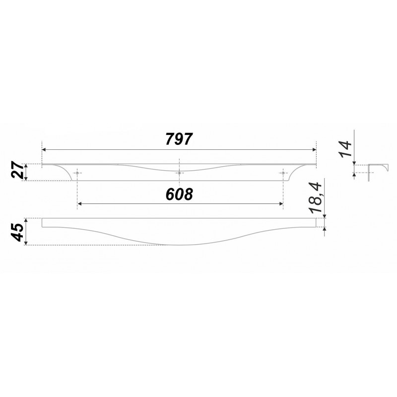 Ширина фасадов 400, 450, 500, 600, 800 – самые распространенные в массовом секторе мебели. Именно с такими параметрами предложены торцевые ручки M «в размер» фасада.