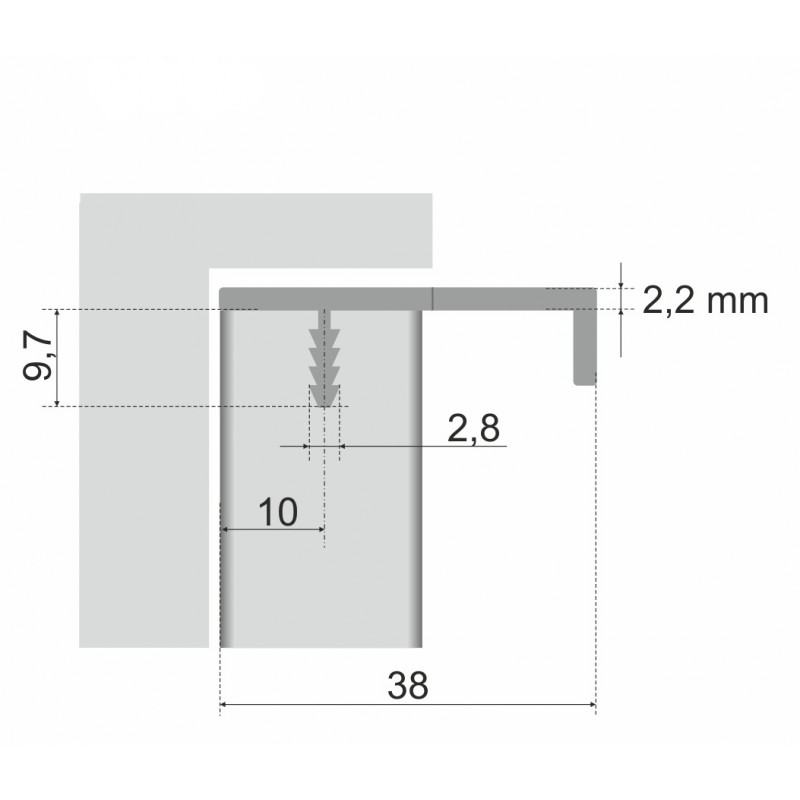 RT009 устанавливается на фасады врезным способом, то есть вставляется в паз в торце фасада.