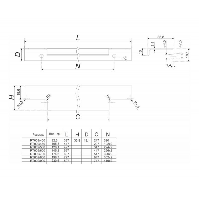 Торцевая ручка RAY RT009 представлена в наиболее популярных размерах – 350, 400, 450, 500, 600, 700, 800 и 900 мм и актуальных цветах: «Хром полированный» (СР), «Сатиновый хром» (SC), «Нержавеющая сталь» (SST), «Чёрный матовый» (BL), «Сатиновое золото» (SG). Ручки идеально впишутся в современные интерьеры в стиле лофт, модерн и сontemporary.