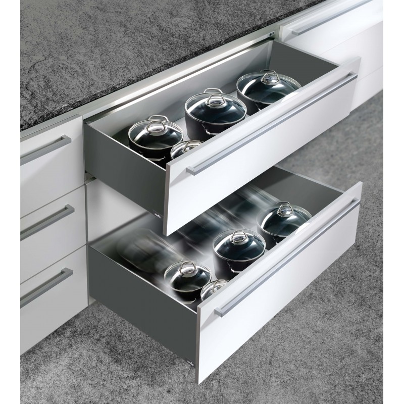 SWIMBOX PRO – это системы выдвижения c тонкими, изящными боковинами толщиной всего 12,8 мм. Они поддерживают элегантный стиль и обеспечивают безупречную функциональность. SWIMBOX PRO дарят настоящее удовольствие от пользования. Системы обеспечивают мягкий и бесшумный ход, идеальное закрывание благодаря амортизации и доведению. SWIMBOX PRO обладают оптимальной грузоподъемностью 50 кг и легко выдерживают даже большие, тяжелые ящики с кастрюлями, техникой и другими массивными предметами. И при этом будут также плавно, стабильно и уверенно работать благодаря механизму синхронизации. Идеально ровные и гладкие боковины не отнимают ни миллиметра от полезного внутреннего пространства ящика. Также модель предлагает регулировку фасада по вертикали и горизонтали +/- 2 мм для достижения его идеального положения.