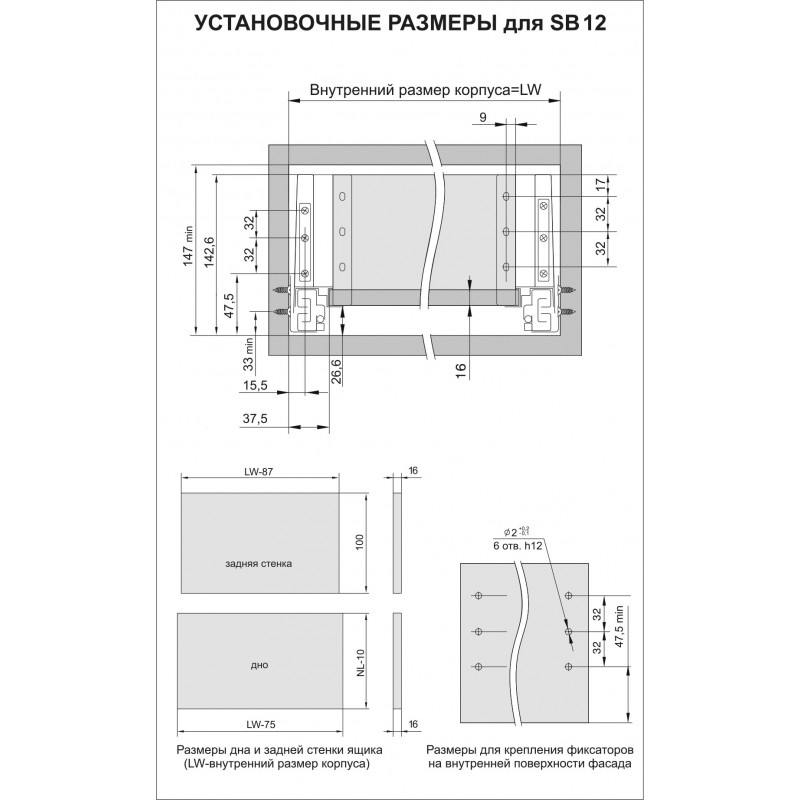 Минимальная высота проёма:147 мм