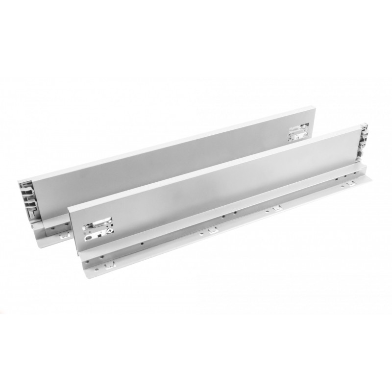 Прямые боковины для стандартного ящика представлены в вариантах монтажной длины от 300 до 500 мм в трёх популярных цветах: графитовый, белый и серый.