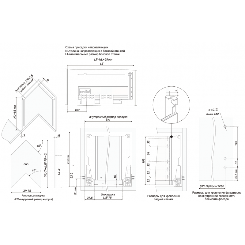 Держатель задней стенки высокого углового ящика предназначен для надежной фиксации задней стенки с боковинами углового ящика под минимально необходимый проем 224 мм. Необычная «ломаная» форма задней стенки, под прямым углом, требует выверенного крепежного решения. Поэтому для возможности формирования прочного углового ящика BOYARD предлагает специальный держатель, отвечающий всем требованиям формы задней стенки.