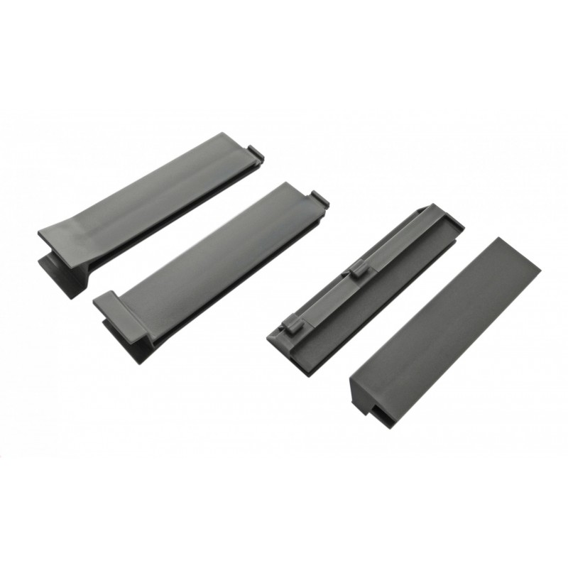 SBH38 предназначен для создания высокого ящика с прямоугольным рейлингом и боковой вставкой высотой 96 мм. Декоративные боковины приобретаются отдельно — в сторонних специализированных организациях, исходя из пожеланий клиентов и общего дизайна мебели. Для создания декоративной вставки необходимо выбрать материал, заказать раскрой по параметрам «номинальная длина направляющих минус 38 мм; высота вставки 96 мм; толщина 4 мм» и обработать видимые края. Высота и толщина вставки — неизменные параметры, в то время как длина может быть разной.