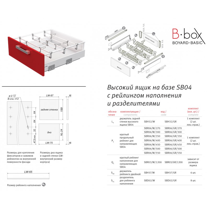 SBR03 – рейлинг наполнения круглый для направляющих B-Box. Предназначен для разделения и упорядочивания внутреннего пространства высоких и средних выдвижных ящиков, сформированных при помощи направляющих B-box. С помощью рейлингов наполнения внутреннее пространство выдвижных ящиков делится на ячейки. Рейлинг наполнения представляет собой металлическую трубу длиной 1200 мм, которую можно нарезать под необходимые размеры. Рейлинг предложен в популярных белом и сером цветах. Материал – прочный и долговечный алюминий.