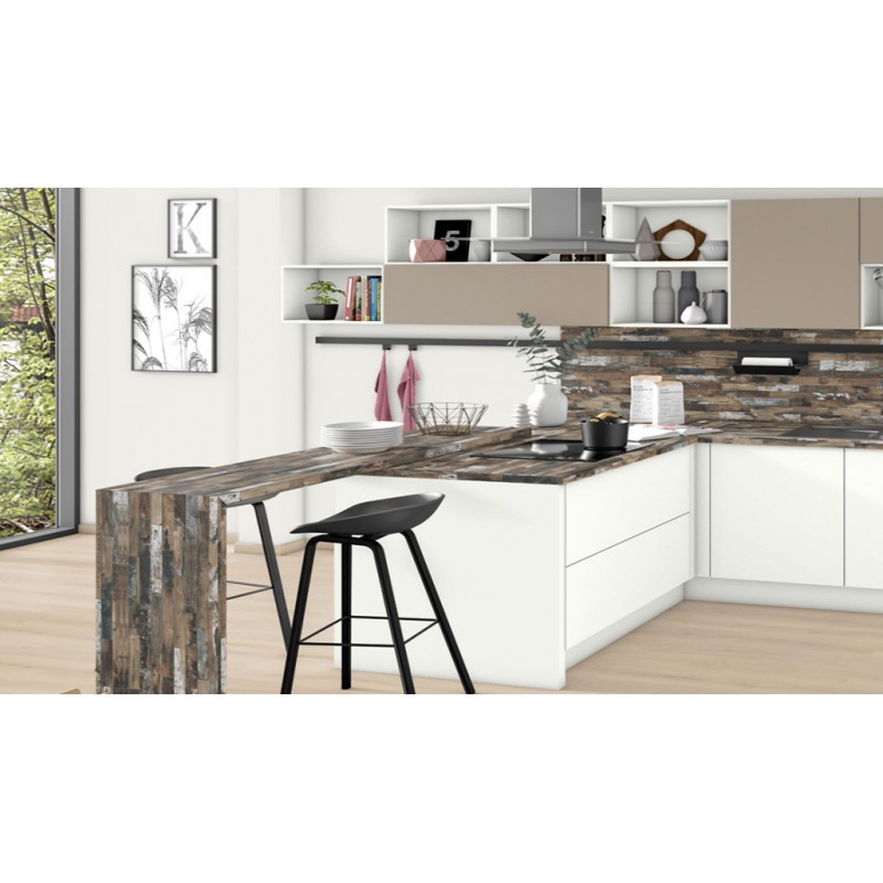 Сосна Силэнд – это репродукция древесины сосны с имитацией дощатого рисунка, ярко выраженным эффектом изношенности и богатой цветовой гаммой. Этот декор отлично подходит для столешниц, так как он сочетается с большим количеством однотонных декоров, выступая при этом в качестве яркого акцента.