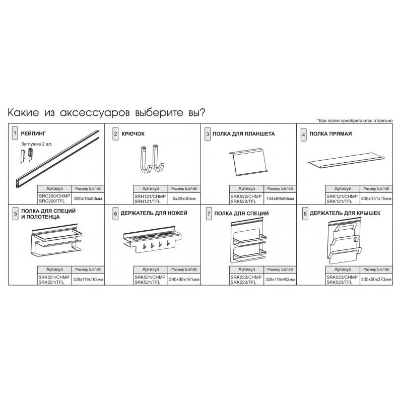 Для завершенного вида SRC200 в комплект включены крепежи и заглушки для оформления боковин 2 шт.