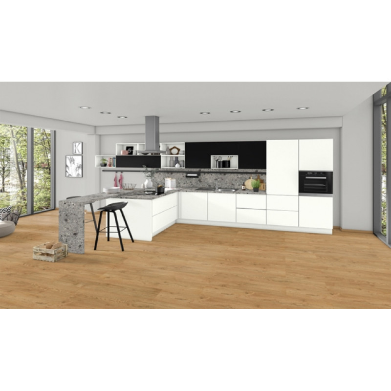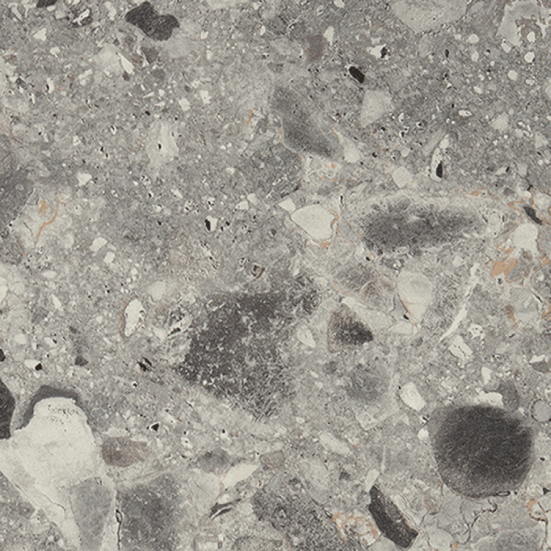 Имитации терраццо в качестве ретро-элементов снова используются в дизайне интерьеров. Терраццо Триест серый – это выразительный декор с несколько бóльшим масштабом рисунка, который за счёт своих серых оттенков очень хорошо подходит к поверхностям как в актуальных серых однотонных декорах, так и к древесным репродукциям, таким как Орех или светлый Каштан. Структура ST75 Минеральный сатин придаёт декору на ощупь бархатистость, а на вид естественную неравномерность рельефа.