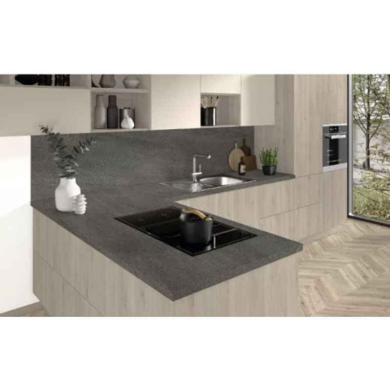 Декор F032 Гранит Кашиа серый – это современная репродукция мелкозернистого гранита, которая может стать более элегантной и естественной альтернативой имитации темного бетона. Тонкие прожилки и цветовые градиенты выполнены в теплых оттенках, что позволяет создавать множество гармоничных сочетаний этого декора с древесными репродукциями.