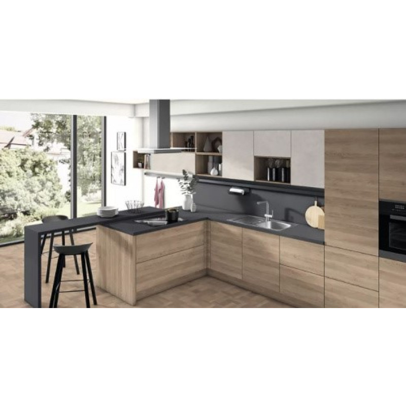 Декор F486 Спаркл Грэйн белый, являющийся имитацией материала терраццо, содержит в своем рисунке изображения мелких камней и элементов текстуры гранита, которые смотрятся еще более эффектно за счет шероховатости структуры ST76 Минерал шероховатый матовый. Очень холодный, почти голубоватый оттенок этого белого декора идеально сочетается с синими однотонными декорами и древесными репродукциями естественных цветов.