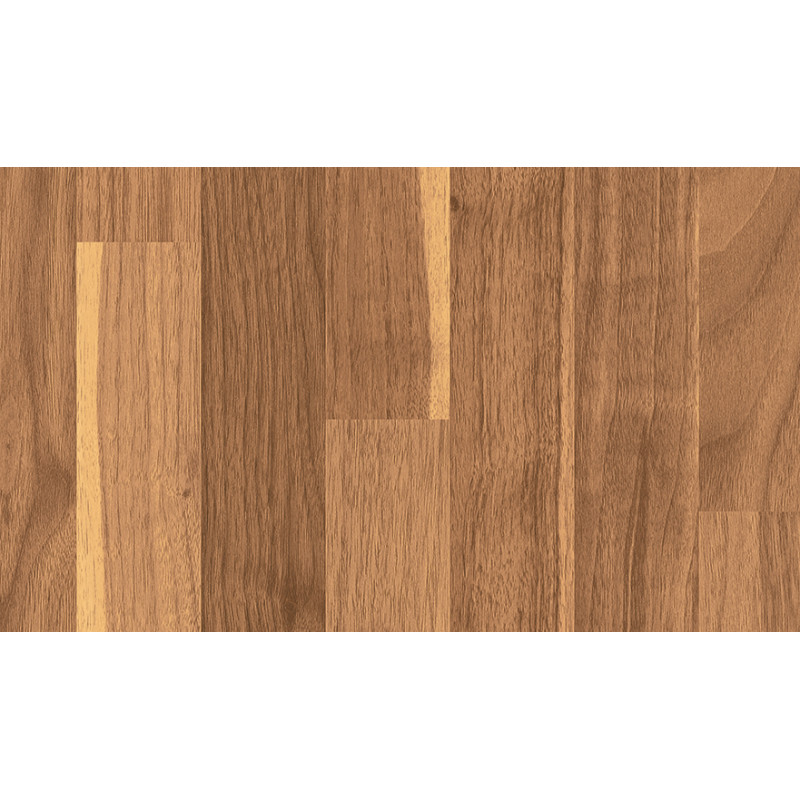 Репродукции наборной древесины пользуются большим спросом именно в дизайне столешниц, так как за счёт узких планок они смотрятся элегантно, но тем не менее стилизованными под поверхности, обработанные вручную. При этом в рисунке декора Орех наборный наряду с отчасти довольно элегантными, отчасти довольно рустикальными участками, содержатся элементы заболони, за счёт чего он в целом приобретает очень современную и естественную элегантность. Естественный, но при этом современный вид эта репродукция Ореха получает также за счёт структуры ST12 Поры матовые.