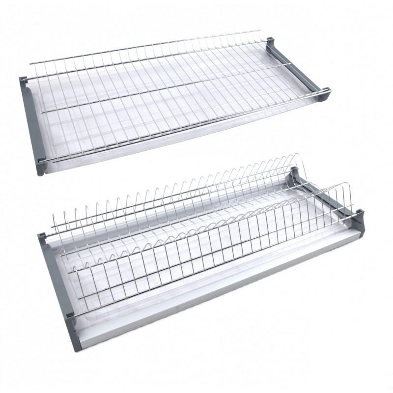 Двухуровневая и вместительная проволочная сушка в верхнюю базу SU03 надёжно устанавливается в короб без дна за счёт специальных алюминиевых трубок с пазом под крепление задней стенки мебельного короба.