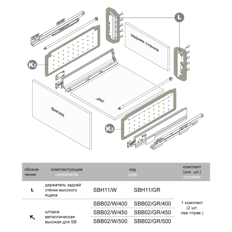 Для формирования ящика можно использовать как круглые рейлинги SBR01, так и прямоугольные SBR04 в зависимости от предпочтений пользователя мебели и стилистических особенностей интерьера.