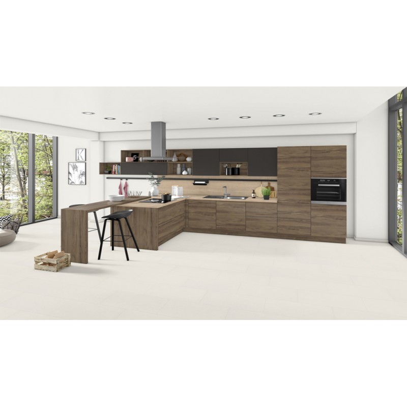 Полосатый декор Травертин Тиволи бежевый по своему рисунку и цвету имеет очень классический внешний вид и поэтому гармонично сочетается также с классическими древесными репродукциями, такими как орех или красно-коричневый дуб. Структура ST9 Мягкий матовый придаёт столешнице в этом декоре соответствующую прохладность и матовость на ощупь.